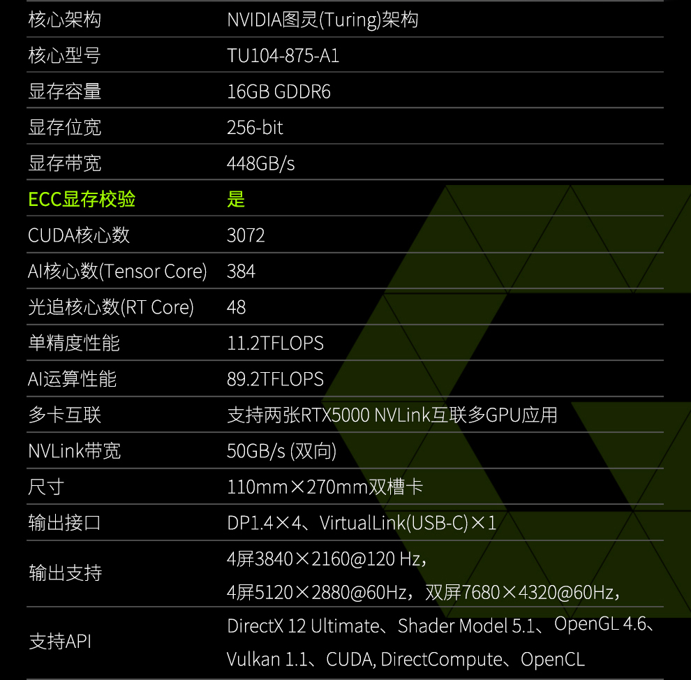 英偉達(dá) NVIDIA Quadro RTX5000 專業(yè)顯卡
