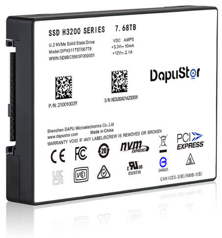 大普微H3200 1.92T U.2 PCIe 3.0 NVMe企業(yè)級(jí)SSD