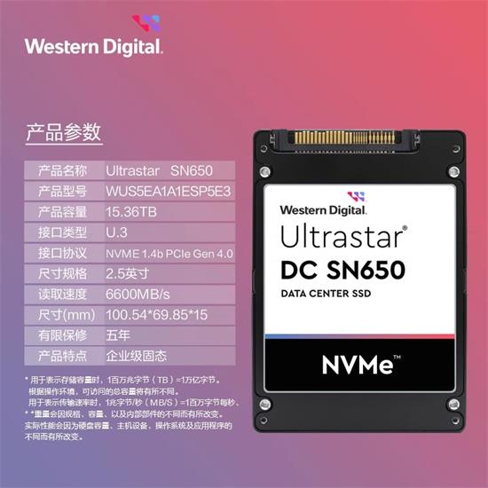 WUS5EA1A1ESP5E3西數(shù)SN650 15.36T U.3 NVMe企業(yè)級(jí)SSD