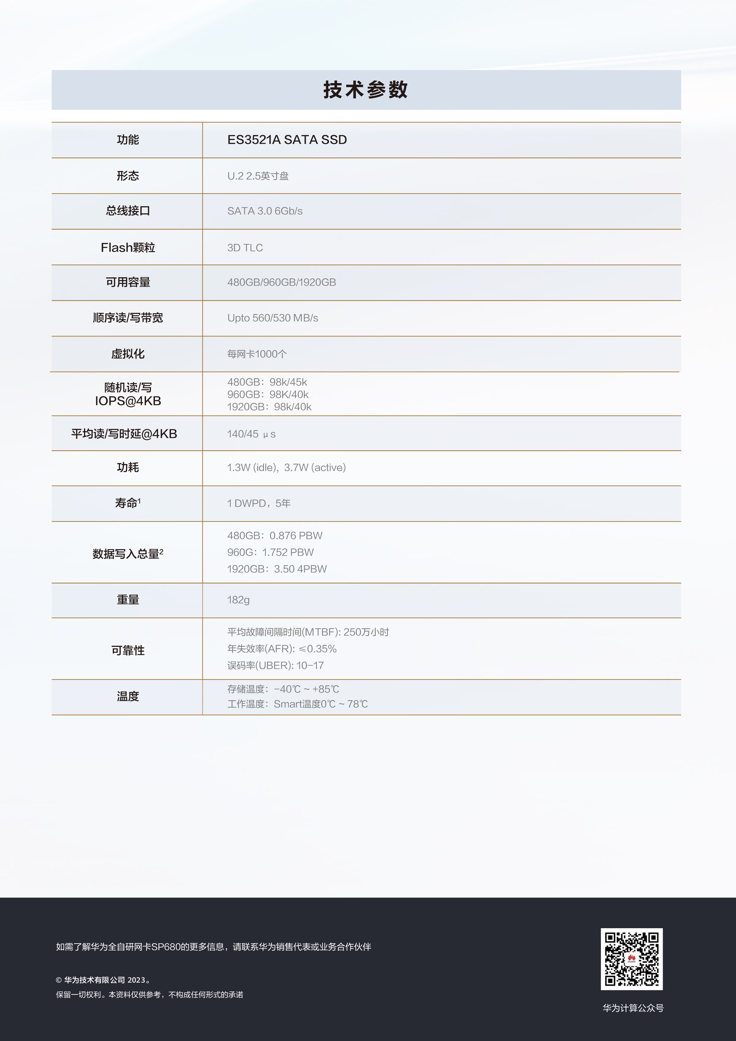 S960NAATA05華為ES3521A V6 2.5寸SATA3 960G企業級SSD