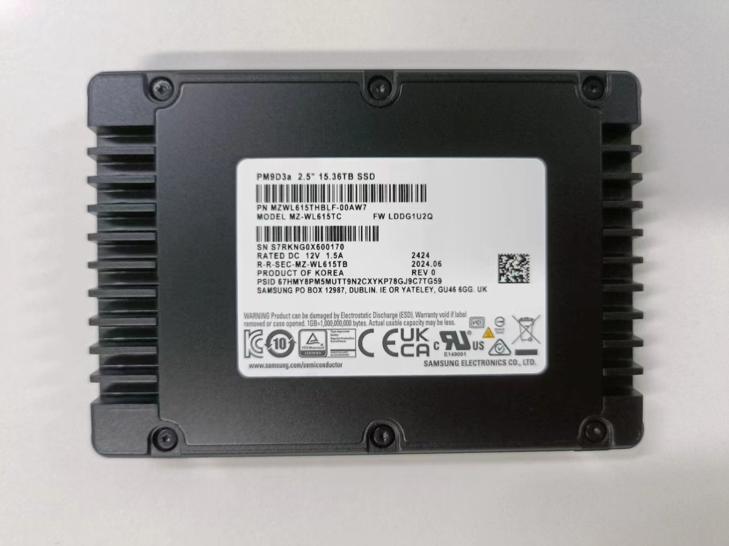 MZWL615THBLF-00AW7三星PM9D3a 15.36T U.2 NVME 5.0企業(yè)級SSD