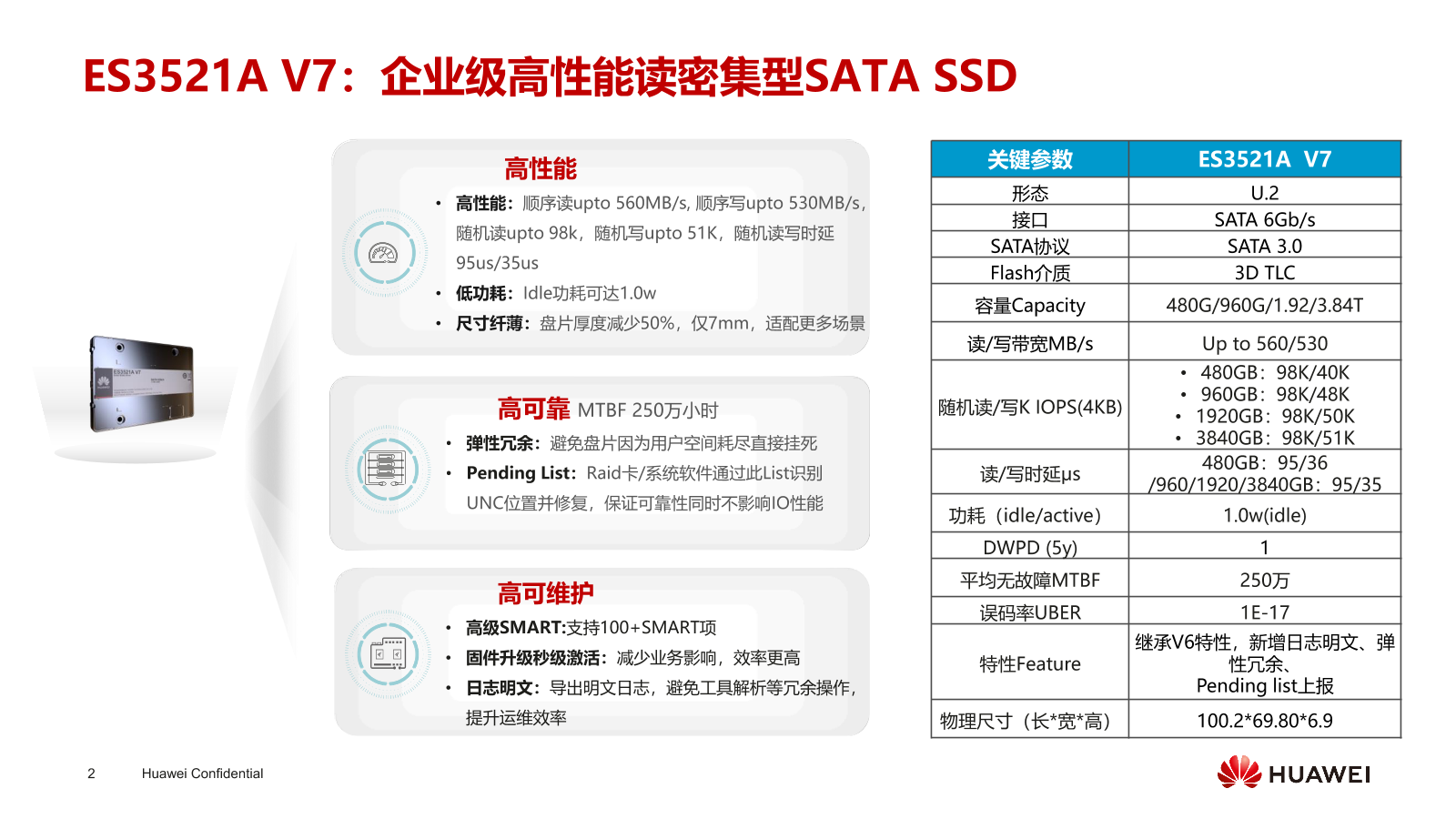 SF1T9NAST04華為ES3521A V7 2.5寸SATA3 1.92T企業級SSD