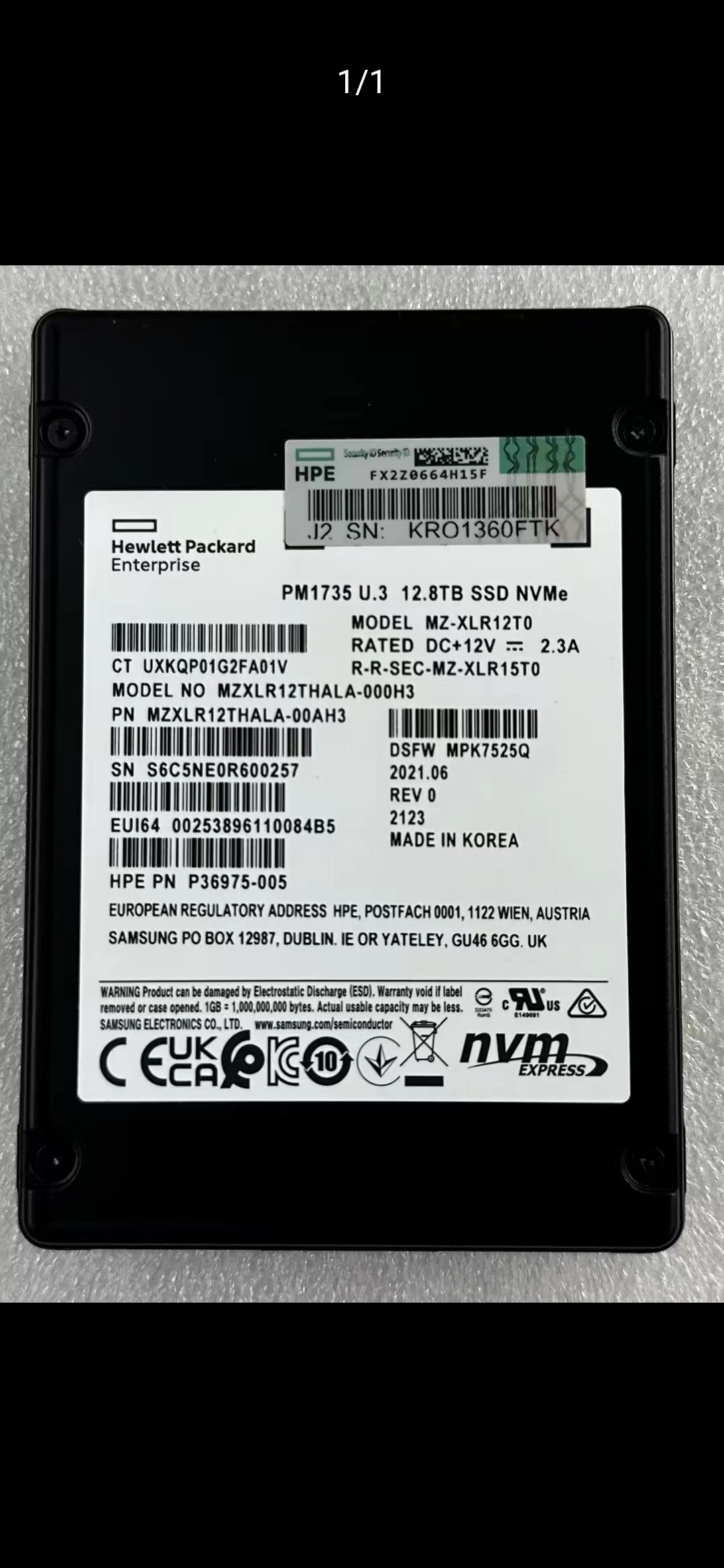 三星PM1735 12.8T U.3 NVMe MZXLR12THALA-00AH3惠普定制版企業(yè)級SSD